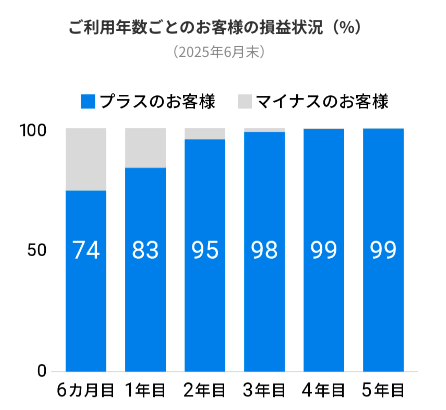 特に1〜2年目以降にはプラスリターンになる確率も高いため、手数料負けすることも少なくなります。